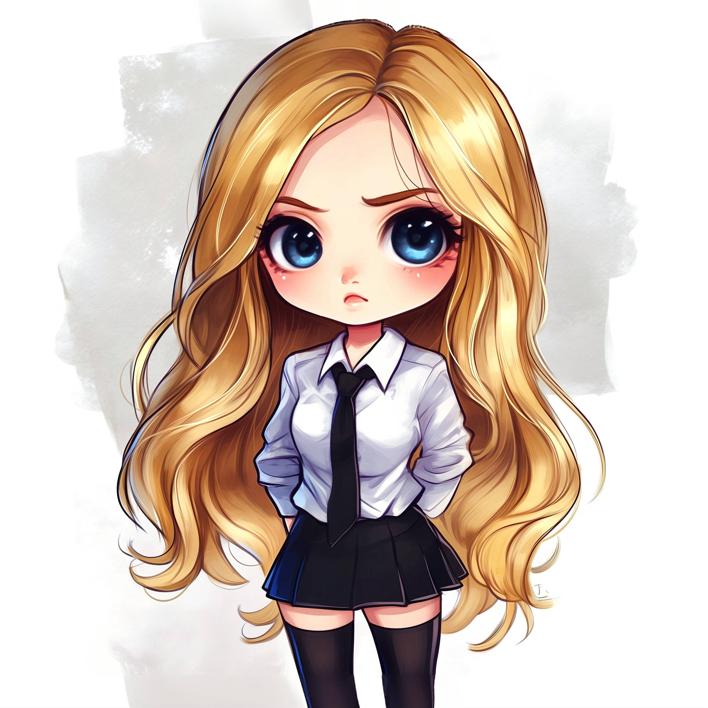 - HAIR: golden blonde, long